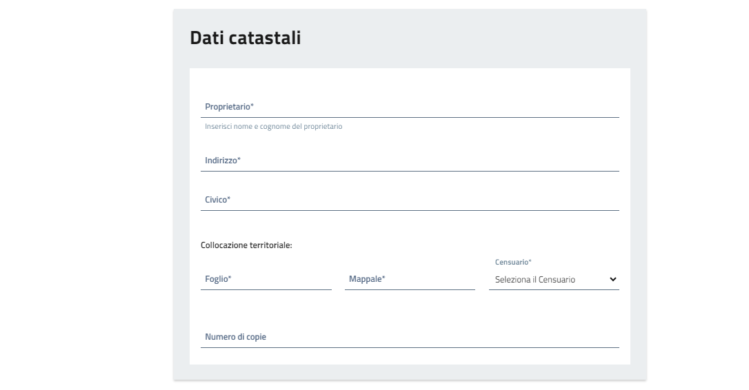 Cliccando su "Carica documenti" inserire l'incarico o la delega e della mappa catastale.