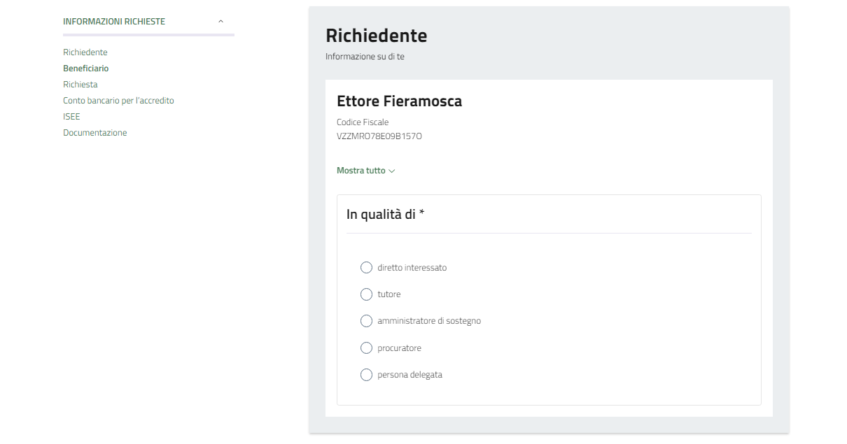 Nel caso in cui si sia il diretto interessato proseguire con la compilazione.