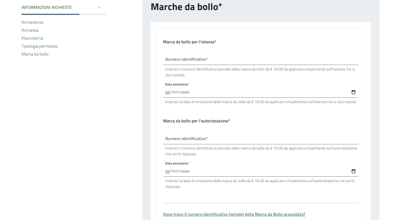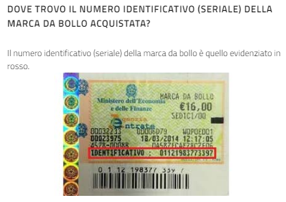 Le marche vanno indicate nell'apposito box, inserendo il numero identificativo e la data di emissione stampata su di esse.
