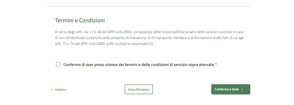 Cliccare su Avanti e dopo aver verificato la correttezza dei dati inseriti, cliccare su "Conferma e invia".