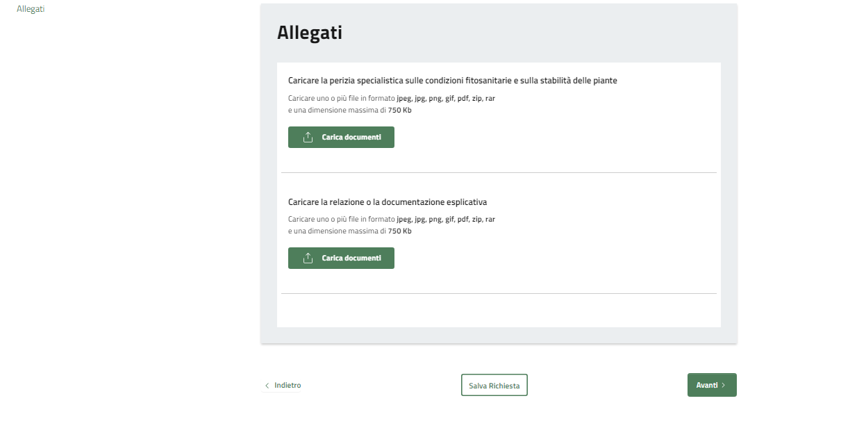 Caricare gli allegati richiesti cliccando su carica documento.